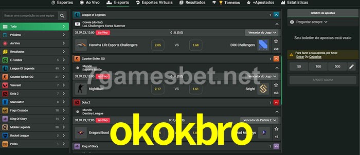 O okokbro oferece uma grande seleção de opções de apostas em e-sports com probabilidades competitivas